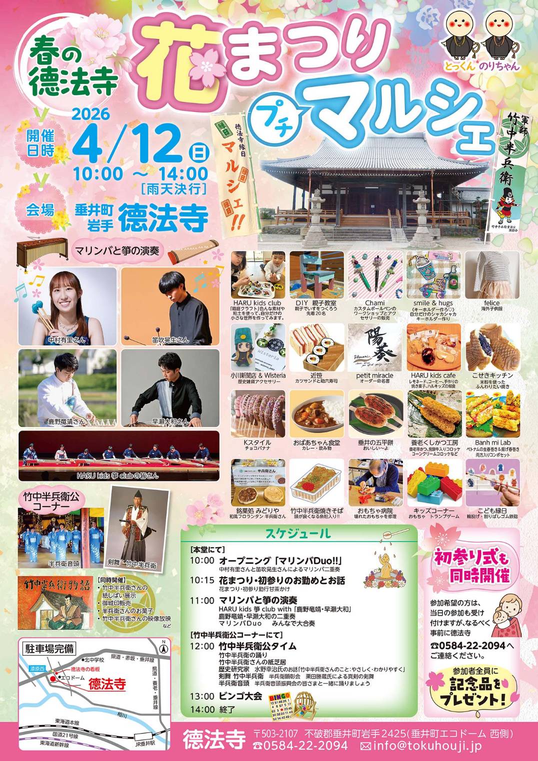 来る2026年4月12日(日)午前10時から徳法寺で、春の徳法寺として「花まつりマルシェ」を開催しますので、大勢の方のご参加をお待ちしております。詳しくは、「花まつりマルシェ」チラシをご覧ください。